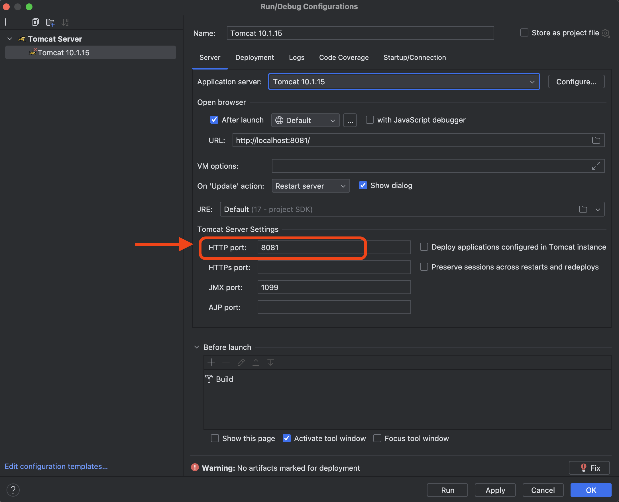 원하는 port 번호를 지정한다. 여기서는 8081로 setting 하였다.