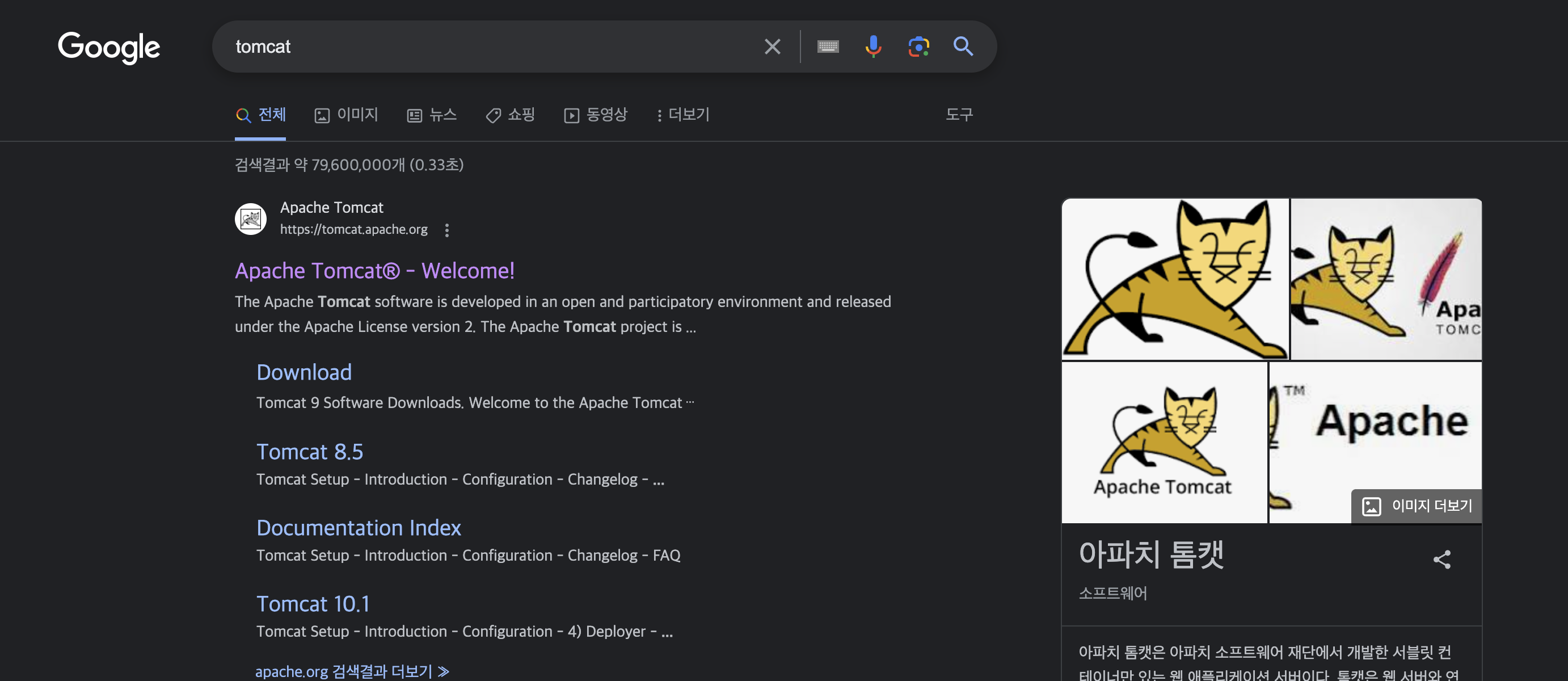 먼저 tomcat을 공식 홈페이지에서 다운 받자! google에서 tomcat으로 검색하면 맨 처음 사이트가 공식 사이트이다.