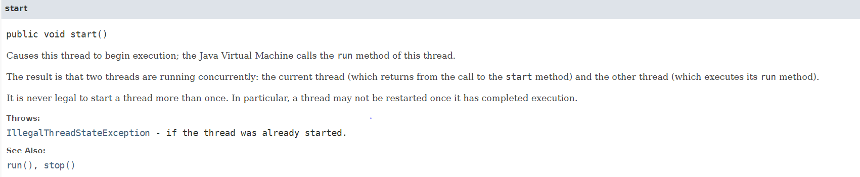 https://docs.oracle.com/javase/8/docs/api/java/lang/Thread.html#start--