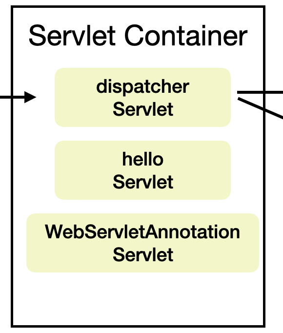 그제서야 위에 그림처럼 서블릿 컨테이너 안에 dispatcher Servlet이 들어가있는 모습이다.