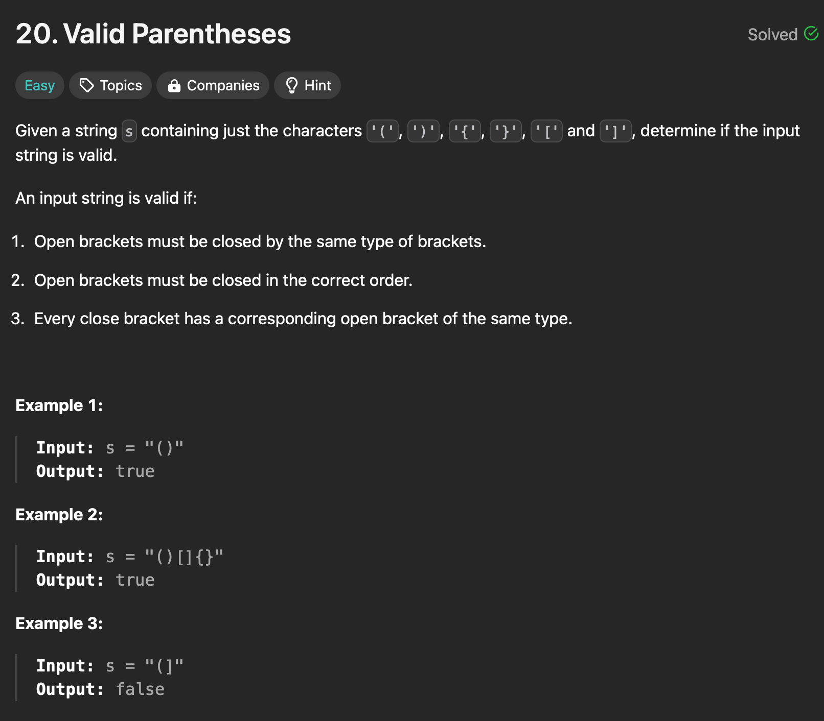 3) 마지막에 stack이 비어있다면 괄호는 valid한것이 된다.
